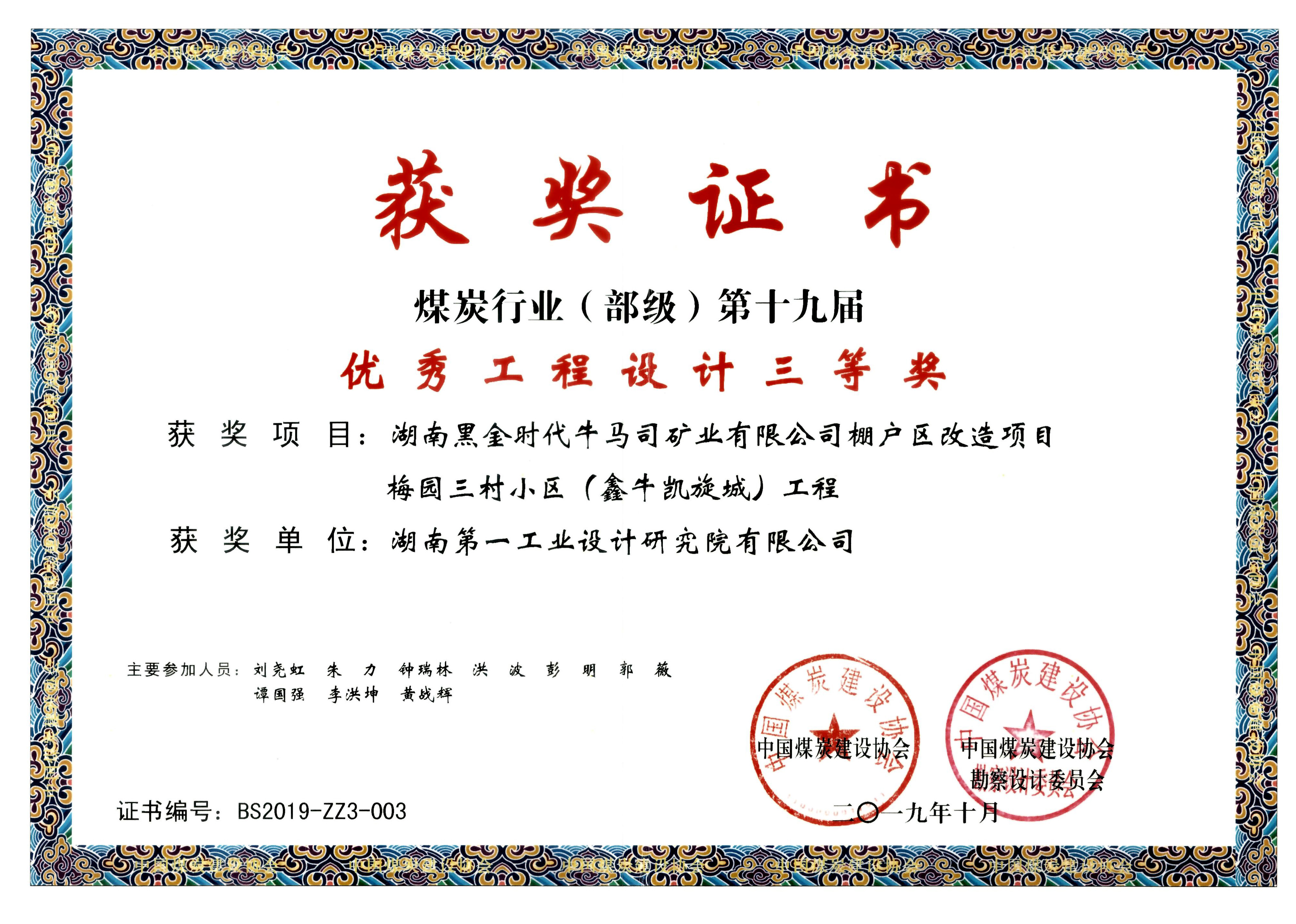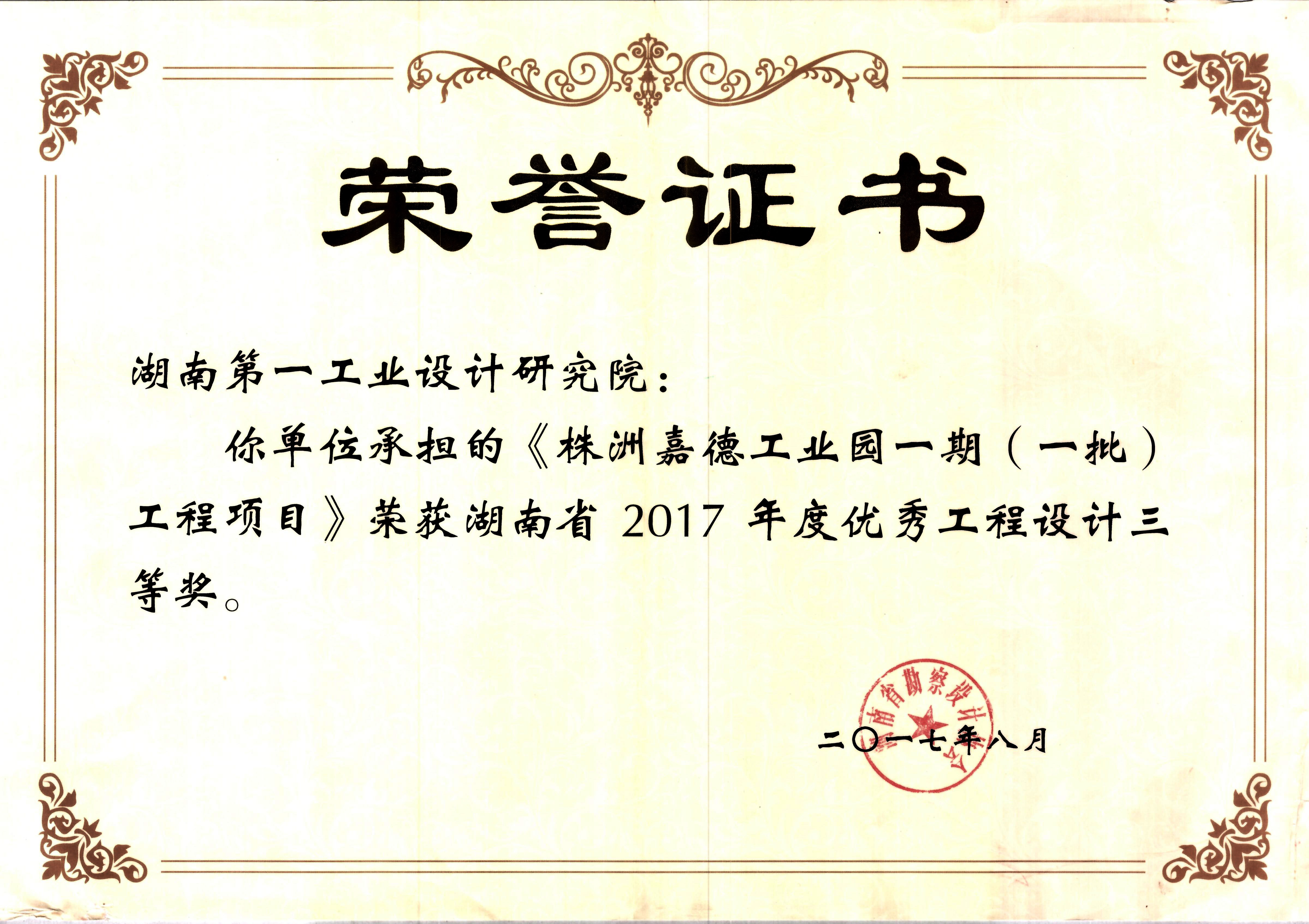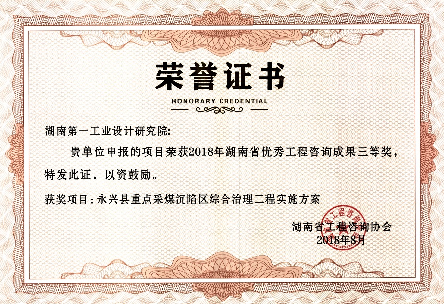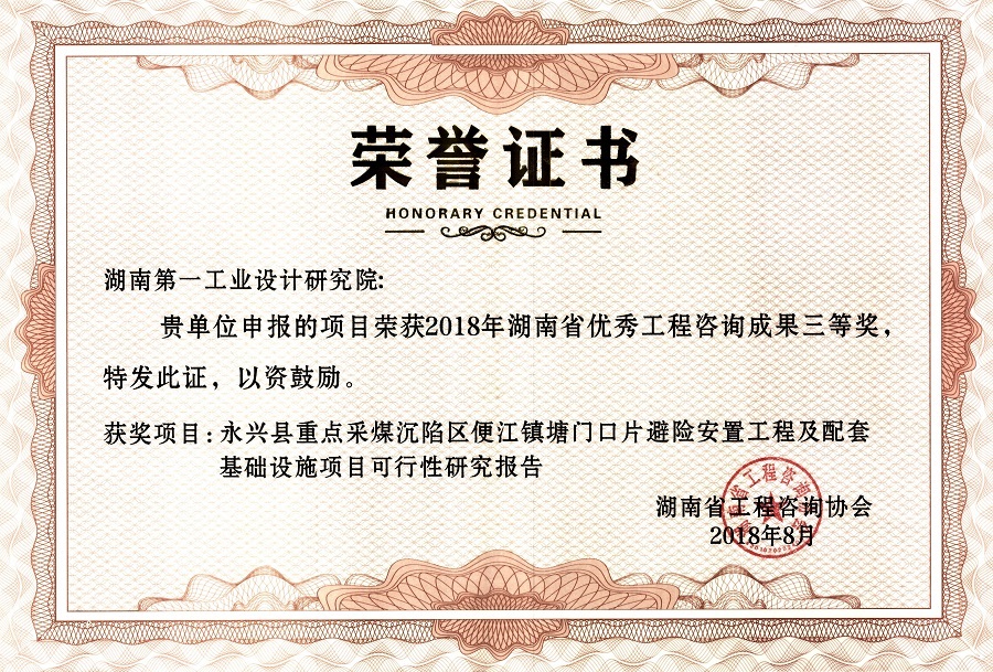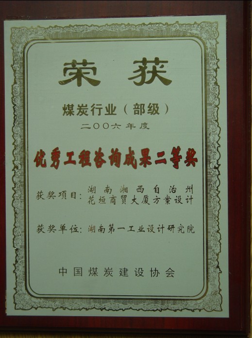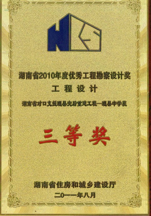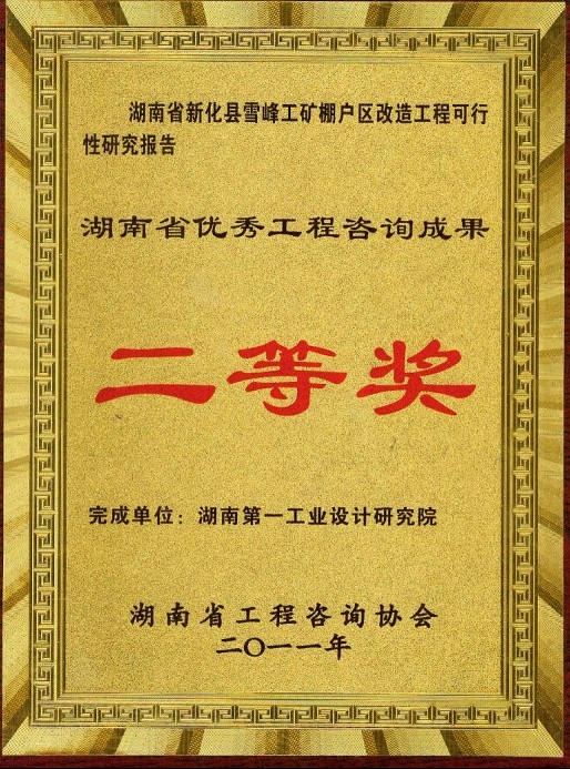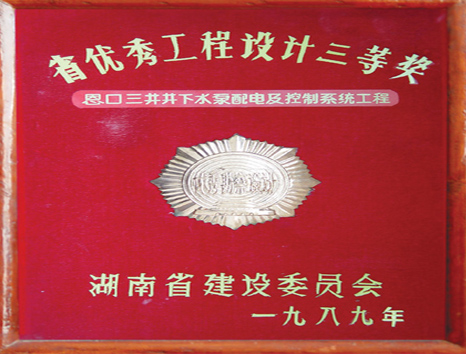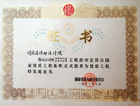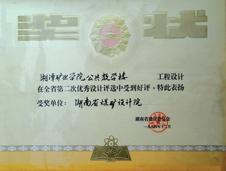 湖南省優(yōu)秀設(shè)計(jì)表揚(yáng)金獎(jiǎng)(1984)
