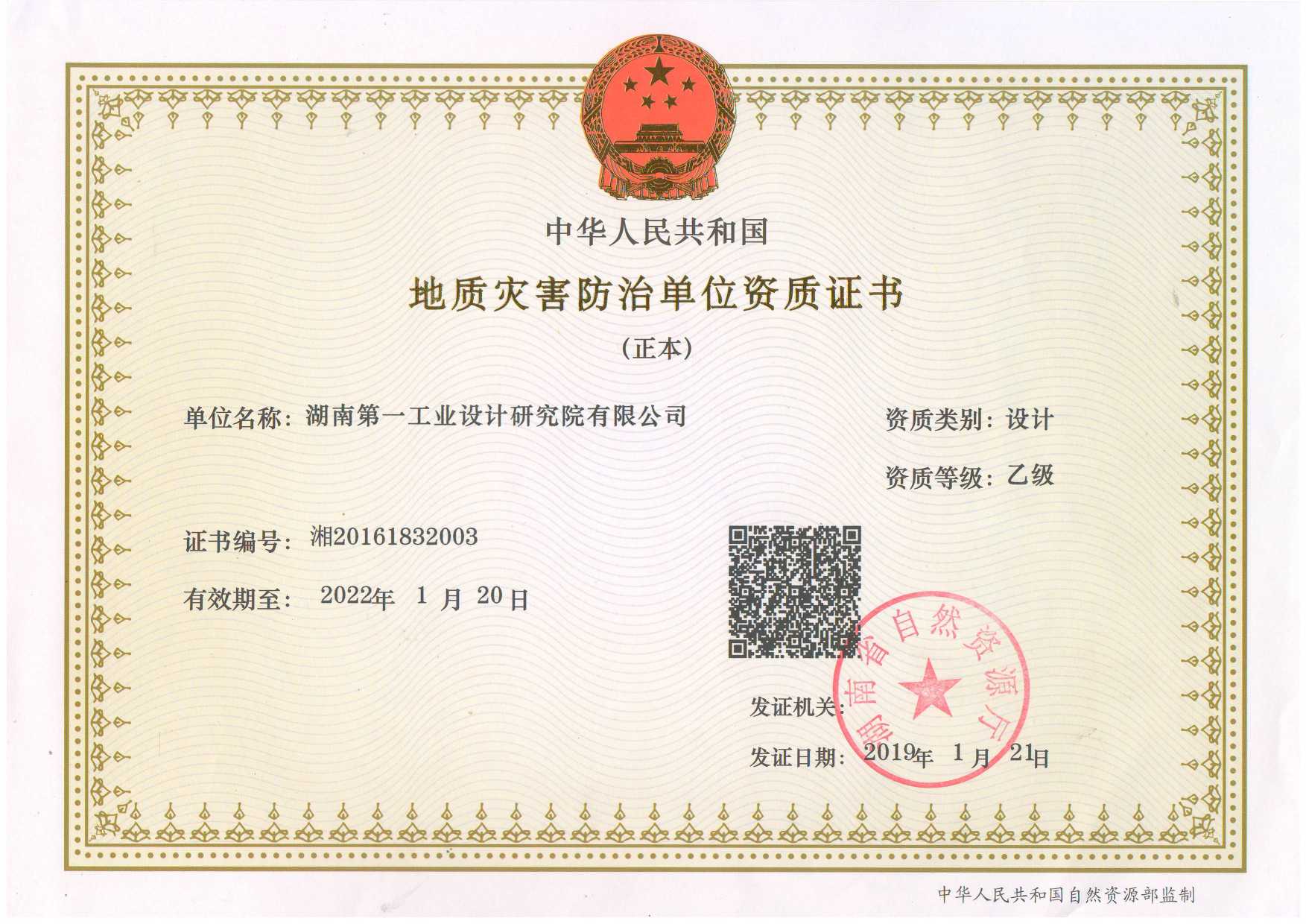地質(zhì)災(zāi)害防治單位資質(zhì)證書