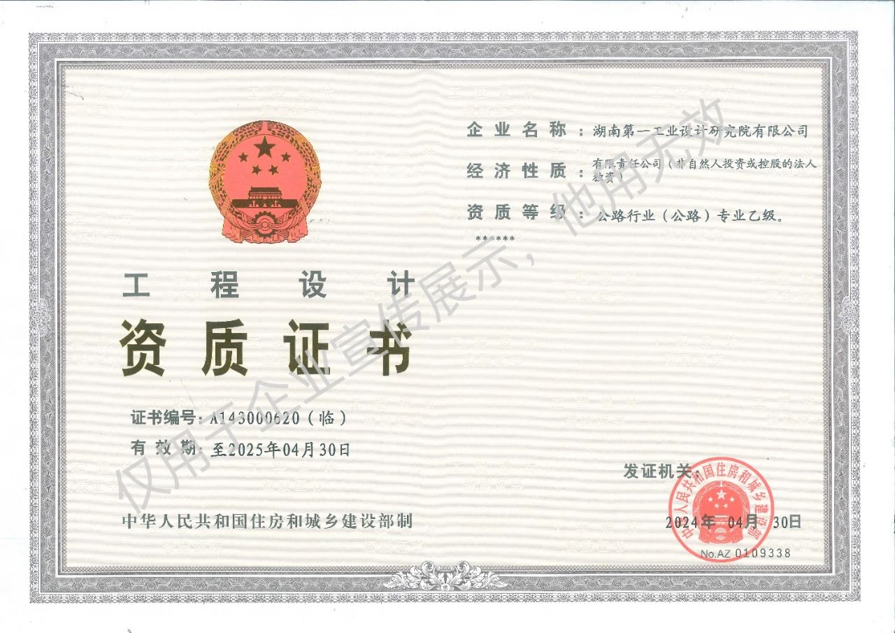 工程設(shè)計(jì)乙級(jí)資質(zhì)證書